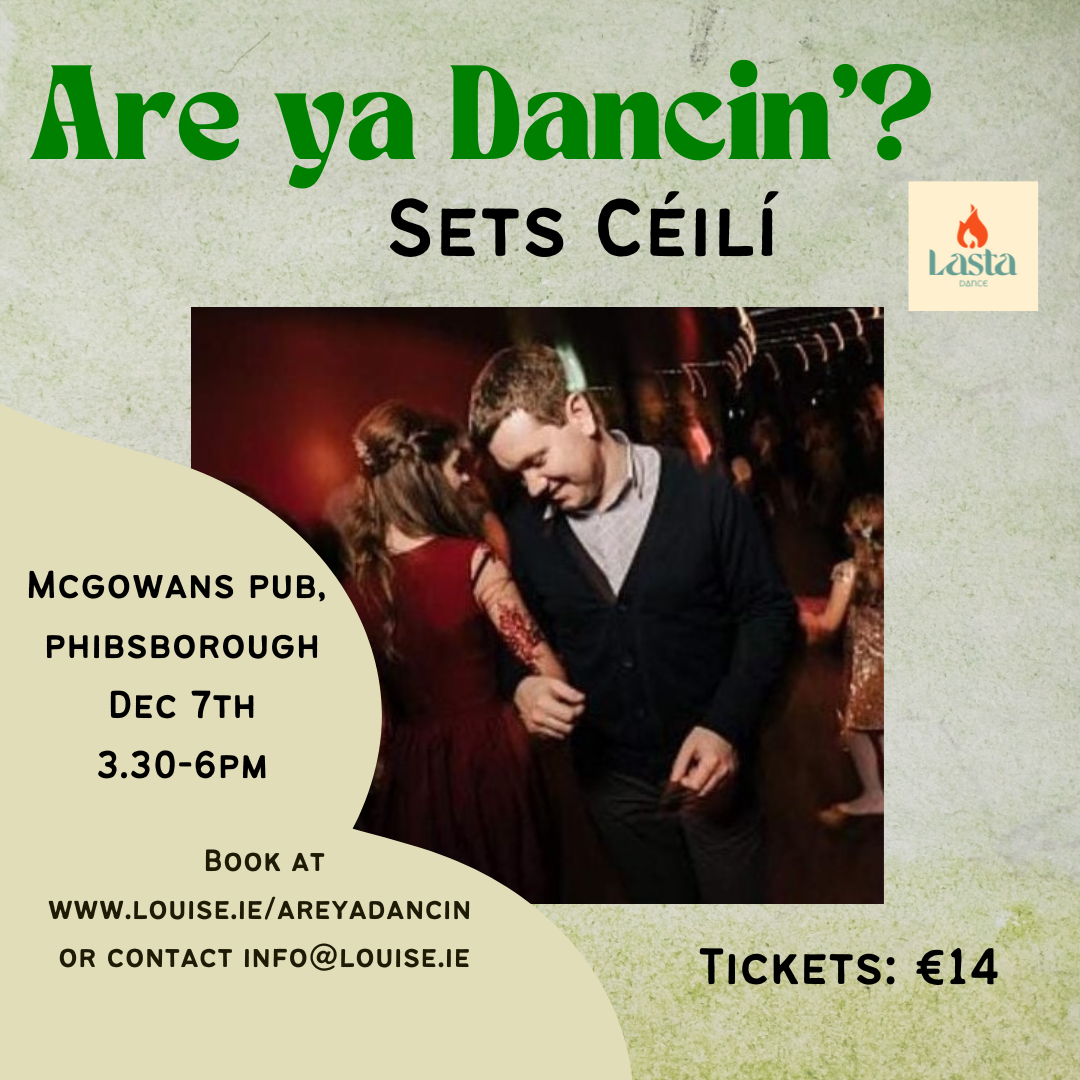 Join us at McGoverns in Phibsborough on December 7th, 3.30-6pm. All dances will be called and live music will be provided by the mighty Beeswing.